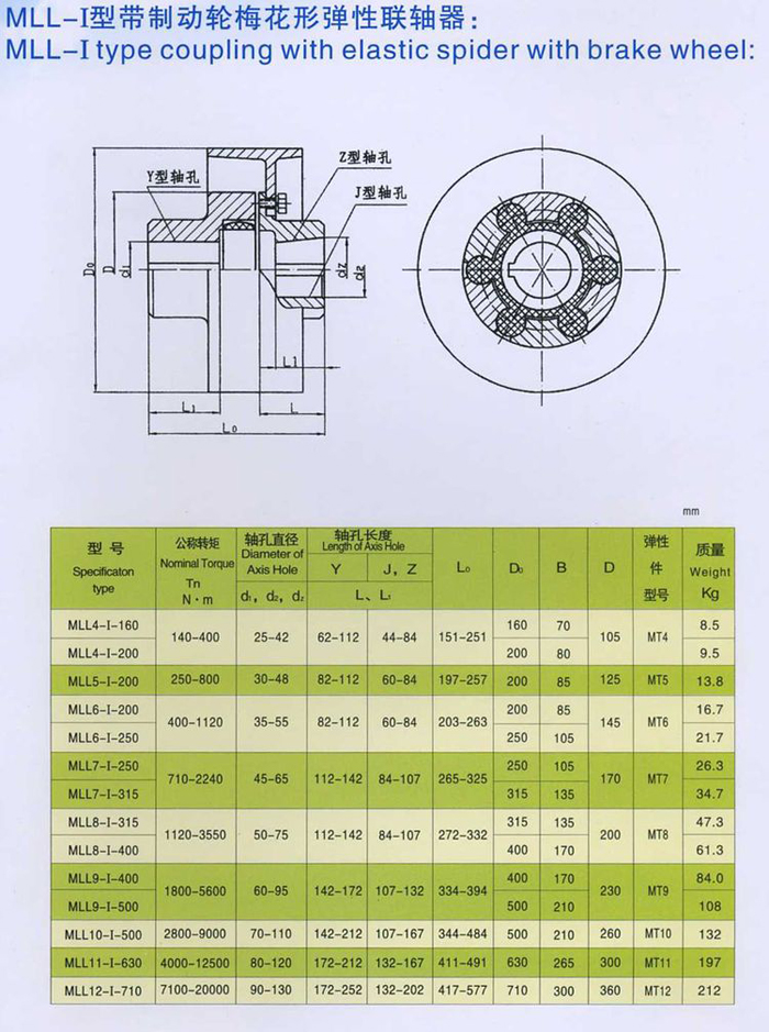 MLL-I型帶制動輪型梅花形彈性聯(lián)軸器系列
