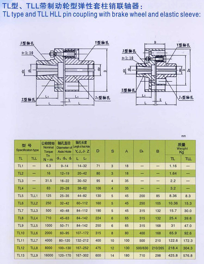 TL型、TLL帶制動輪型彈性套柱銷聯(lián)軸器系列