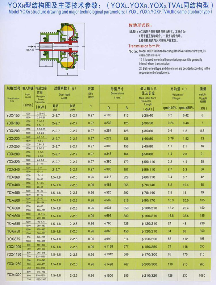 YOXN型結(jié)構(gòu)圖及主要技術(shù)參數(shù):(YOXL.YOXR.YOXP.TVAL